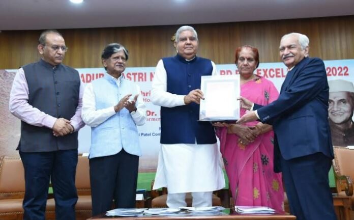 Former Director of IIM Ahmedabad and Padma Shri Bakul Dholakia has been conferred with Lal Bahadur Shastri National Award by Vice President Shri Jagdeep Dhankhar for his outstanding contribution in the field of Management. The award ceremony was held at the Sardar Vallabhbhai Patel Conference Hall in the Vice Presidents House. The award presented by the Lal Bahadur Shastri Institute of Management carries a cash prize of Rs. 5 lakh, a memento, and a citation.