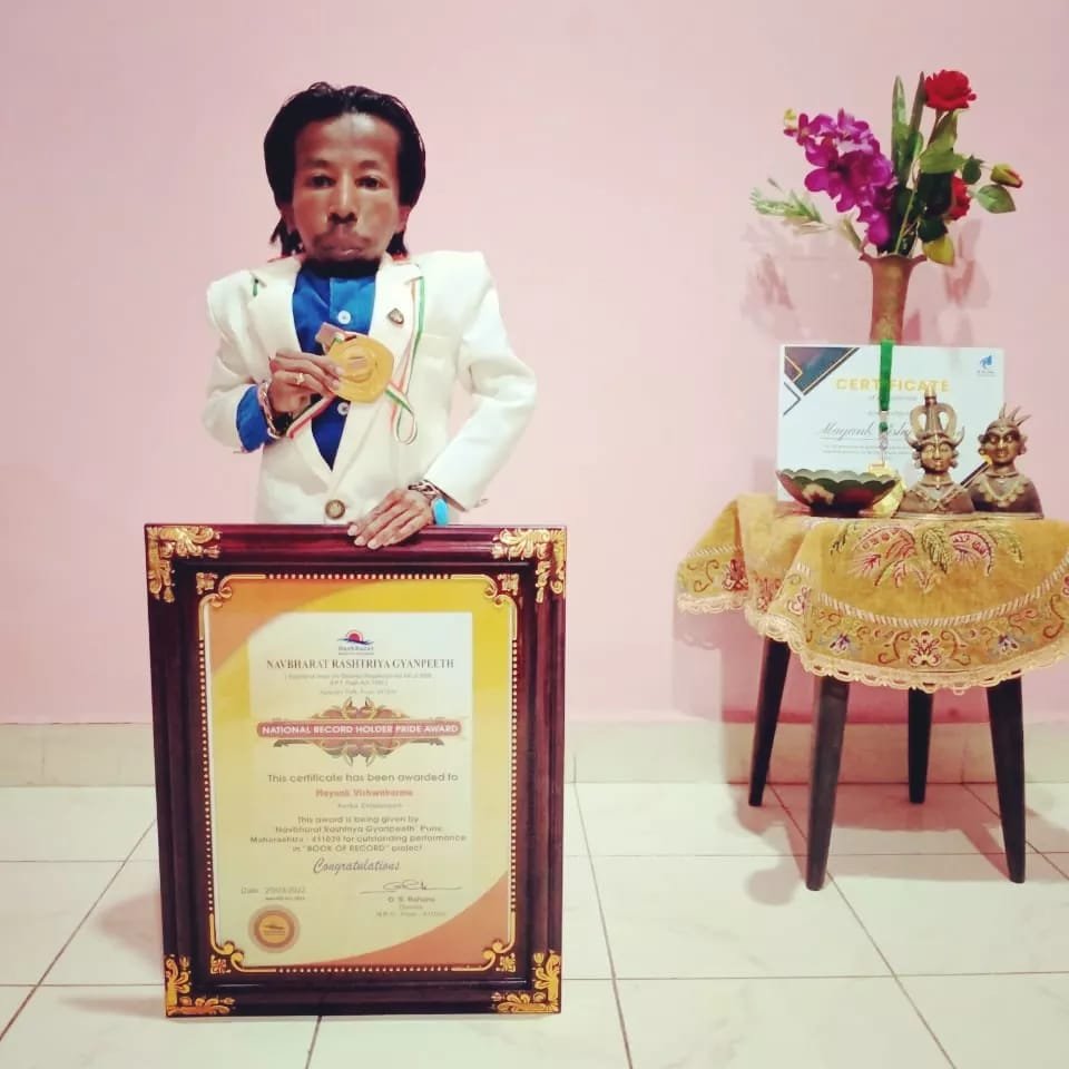 Mayank Vishwakarma is a multi-talented, hard-working person in his own right. Mayank is also a motivational speaker and a social worker, he is also associated with some social work like – The anti-corruption foundation of India as District Director in which he creates awareness to stop corruption, another foundation is Native Chhattisgarh Divyang and Mukti Morcha as a State Coordinator in Arts Department His Achievements – He is a Corona Warrior, “FSIA Real Super Heroes Awardee – 2022”, He is a Certified Food Therapist and Nutritionist and especially, He is also the India Book of Record holder and Asia Book of Record holder – 2022, in which he holds the record for the longest continuous stay in horse pose, 6 minutes 28 seconds – that too in an able-bodied category, Rashtriya Gaurav Puraskar, He has also been honored with the National Record Pride Award by Navbharat Rashtriya Gyanpeeth. Mayank is passionate about Art/Painting/Writing and Singing for which he has won many awards, medals, and certificates. His parents have proved to be his backbone/support system. They are the ones who have seen and supported him and wiped his tears whenever he was on the verge of breaking down. His mother Punni Vishwakarma, 60, and father Manik Lal Vishwakarma, 67, as well as his younger siblings. Of these, none let the little man give up on life. Mayank is adept at everything that most people of his age are today. As such, Mayank has an Instagram account, Instagram ID Name – @mayankvishwakrm_official, where he posts all his latest pictures and his singing reel videos. He wants to be famous and wants people to recognize him differently for his talent and not because of his height. But he does not let anything affect him. It seems he has mentally trained himself to be positive and not get influenced by negative people.