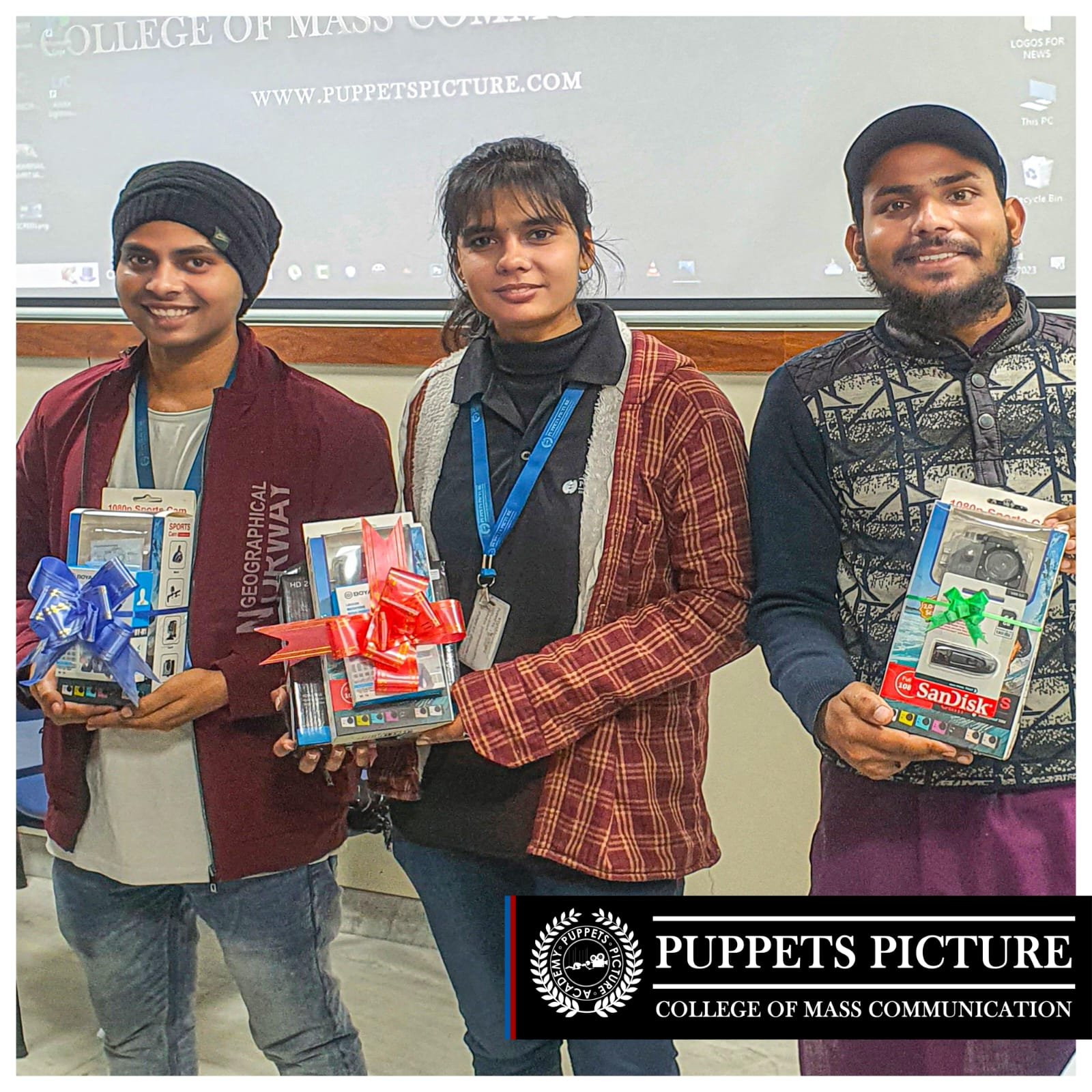 Puppets Picture College of Mass Communication, the top college in Noida for mass communication and journalism has recently organized a script-writing competition where all the students of BJMC and MJMC participated in the event. The event was a success, and many well-known personalities attended the event to encourage and appreciate the students for their efforts. The students who participated and won were rewarded with expensive equipment such as cameras, hard disks, microphones, label mics, and so on.